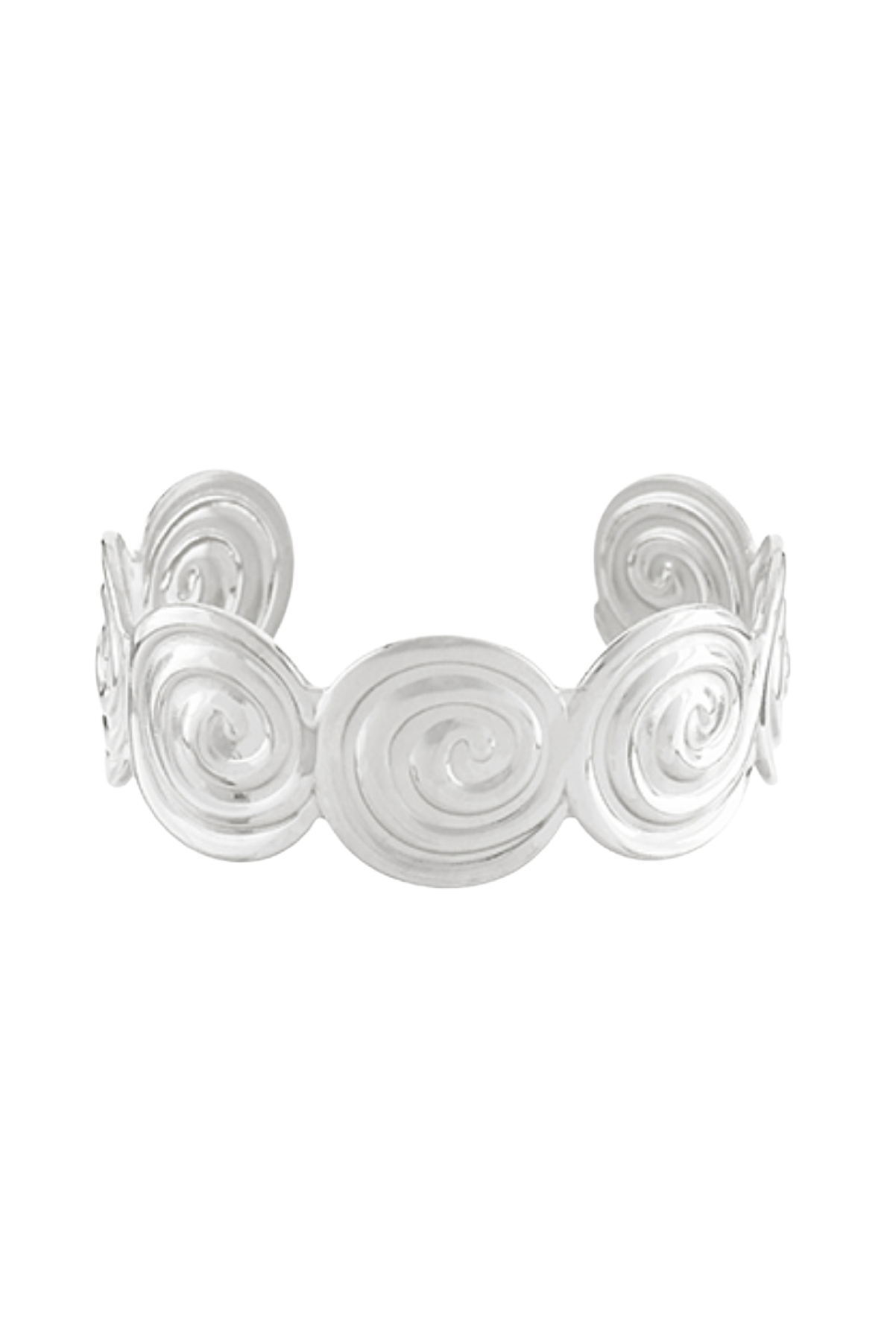 A true statement piece. The Spiera Cuff features a series of high-shine gold spiral forms that wrap the wrist in a bold, sculptural silhouette. Inspired by ancient Greek motifs and modern form, each swirl catches the light from every angle, creating a look that feels powerful yet effortless.