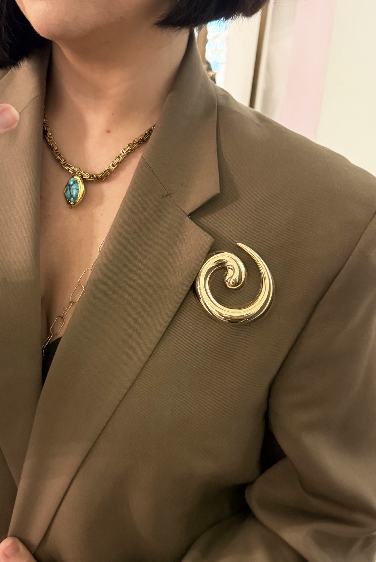 A modern statement with timeless appeal. This sculptural swirl brooch features a smooth, glossy finish and an organic curved silhouette that instantly elevates anything it’s pinned to: blazers, scarves, knits, or even a crisp button-down. Polished yet playful, it’s the kind of accessory that feels thoughtful, unexpected, and effortlessly chic. Perfect as a standout gift or a finishing touch for your own everyday look.