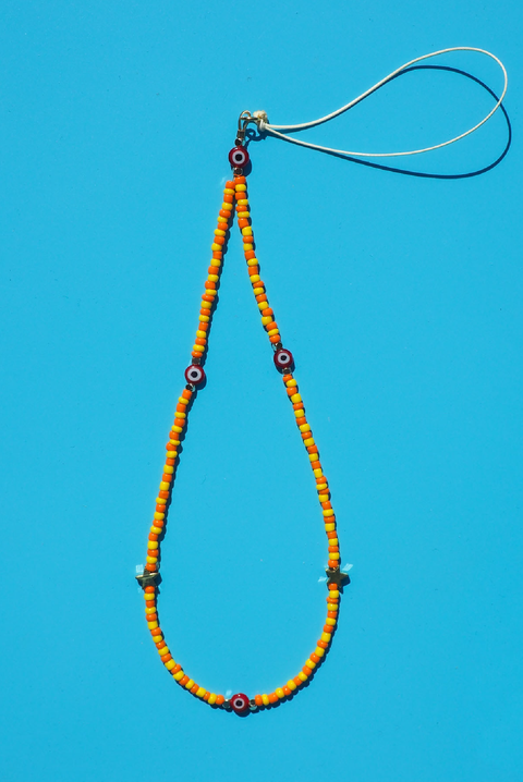 Material: Glass beads, glass evil eye charm, and gold plated brass beads.